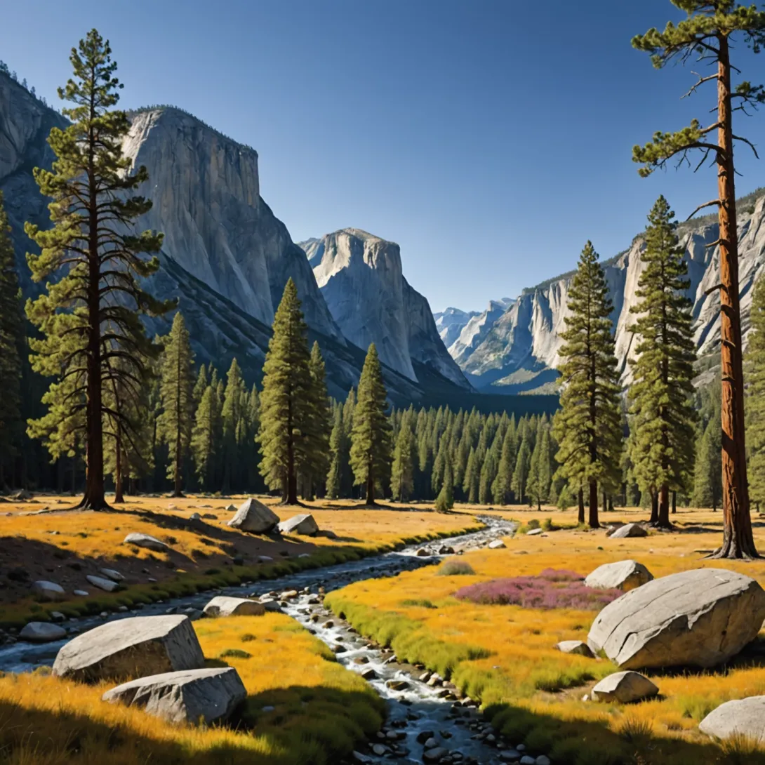 - Величественным гранитным скалам, таким как Эль-Капитан и Хаф-Доум;