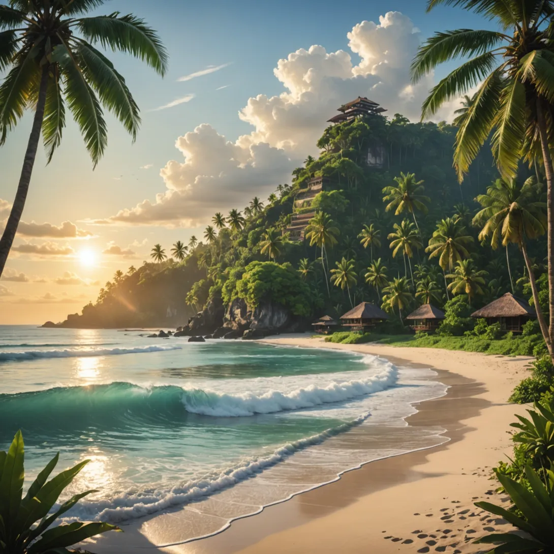 - Бали — остров в Индонезии, знаменитый своими пляжами и тропическими пейзажами. Рассветы на Бали часто сопровождаются видом на океан и пальмовые рощи, создавая незабываемую атмосферу.